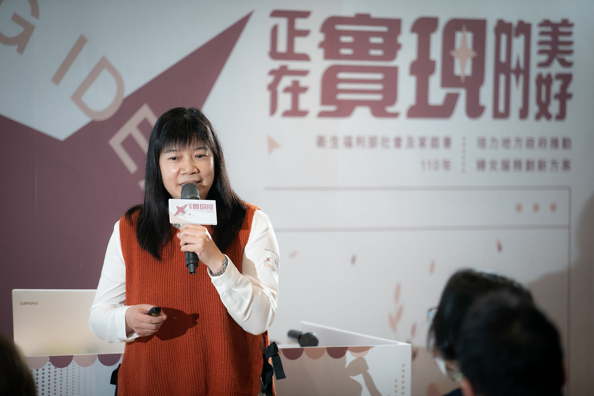 成果發表會現場除了有7個縣市(桃園市、臺南市、高雄市、嘉義市、苗栗縣、花蓮縣、金門縣)的創新服務設計發表,還有5個縣市(新北市、臺中市、雲林縣、臺東縣、屏東縣)與聽眾分享計畫執行過程的關鍵成果,並首度公開歷時18個月的《婦女創新服務社會影響力報告書》,豐富精采的內容令社家署張副署長美美不禁讚嘆:「大家發表的太精采了,每個縣市的計畫都是在地婦女需求所發展出的服務,我甚至想到每個縣市居住!」為計畫下了激勵人心的註解。