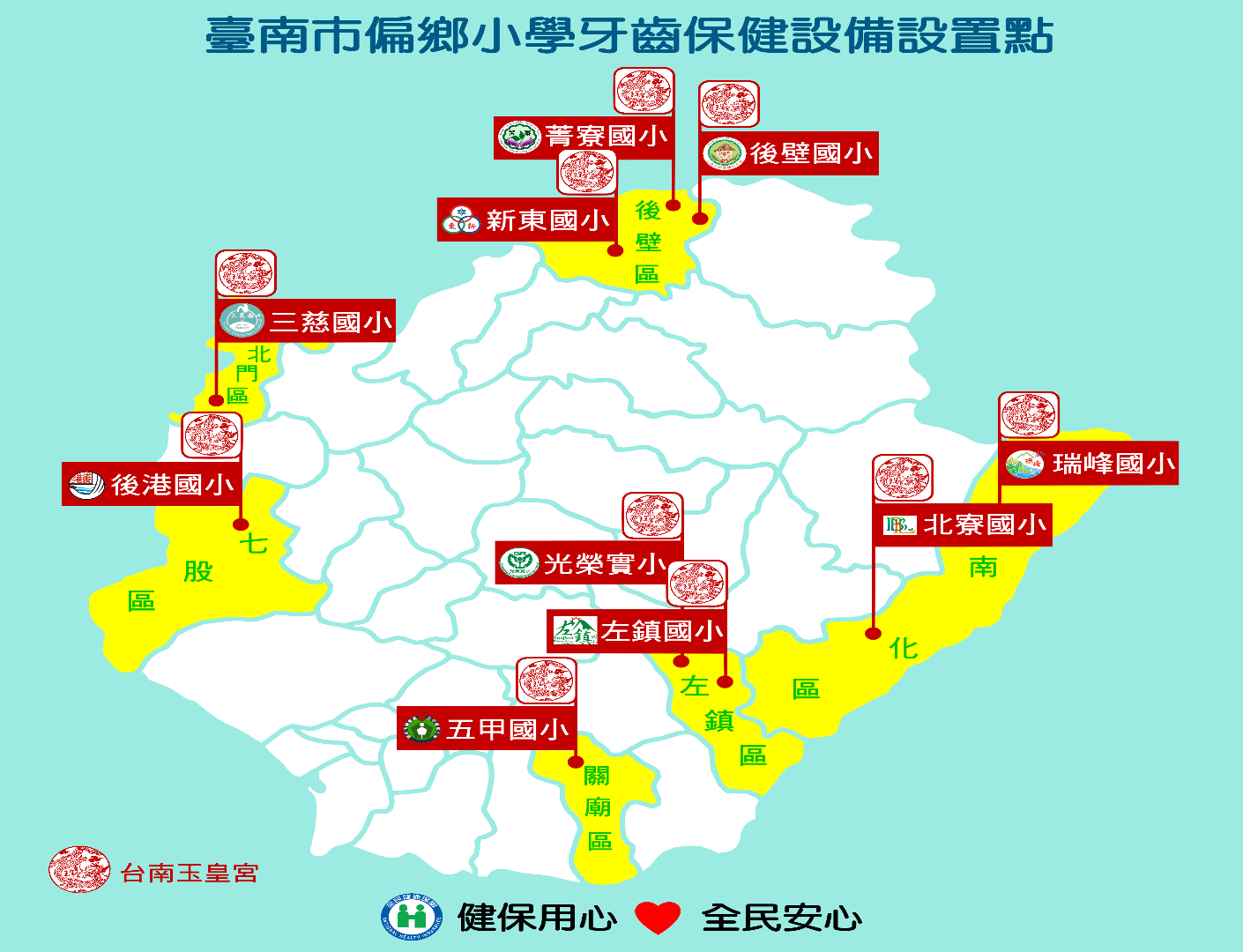 為精進偏鄉學童口腔保健,中央健康保險署首次媒合宗教團體台南開基玉皇宮,捐助臺南市10所偏鄉小學設置牙科診療椅及相關保健設備,總金額達350萬元。今(23)日玉皇宮涂大松主委、健保署南區業務組林純美組長偕同教育局及台南市牙醫師公會陳建璋理事長來到後壁國小實地見證學童在新設牙科診療椅接受診療的良好經驗。