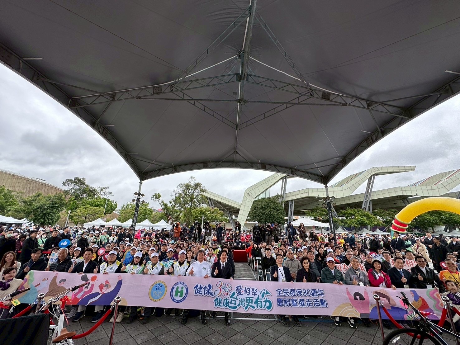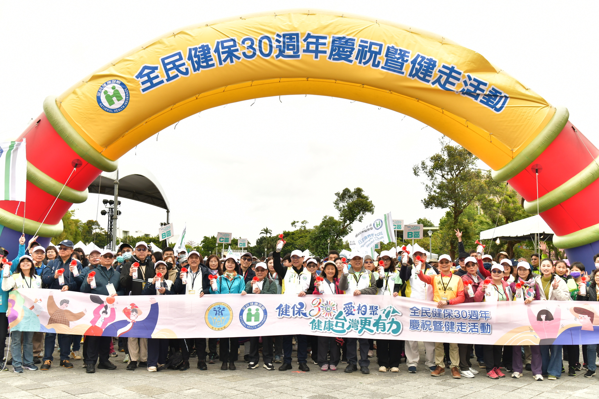 中央健康保險署今(29)日假圓山花博公園花海廣場舉辦「健保30愛相聚 健康台灣更有力-全民健保30週年慶暨健走活動」,賴清德總統親臨現場祝賀勉勵,衛生福利部邱泰源部長、周志浩次長、全民健保歷任推手張博雅前資政(監察院前院長暨衛生署前署長)、劉見祥前總經理、鄭守夏前局長、戴桂英前局長以及各醫界代表齊聚一堂見證傳承;另邀請早產兒家長棒壇教練高志綱、首批接受細胞治療(CAR-T)於高中時期被診斷罹患血癌的吳嘉源、住在臺灣22年的越南新住民及70歲衝浪阿公張文忠等健保受惠者,一起分享健保的美好。同時現場有28個醫藥團體及職業工會等提供互動宣導攤位,吸引千人健走以行動力挺健保30,邁向健康台灣。