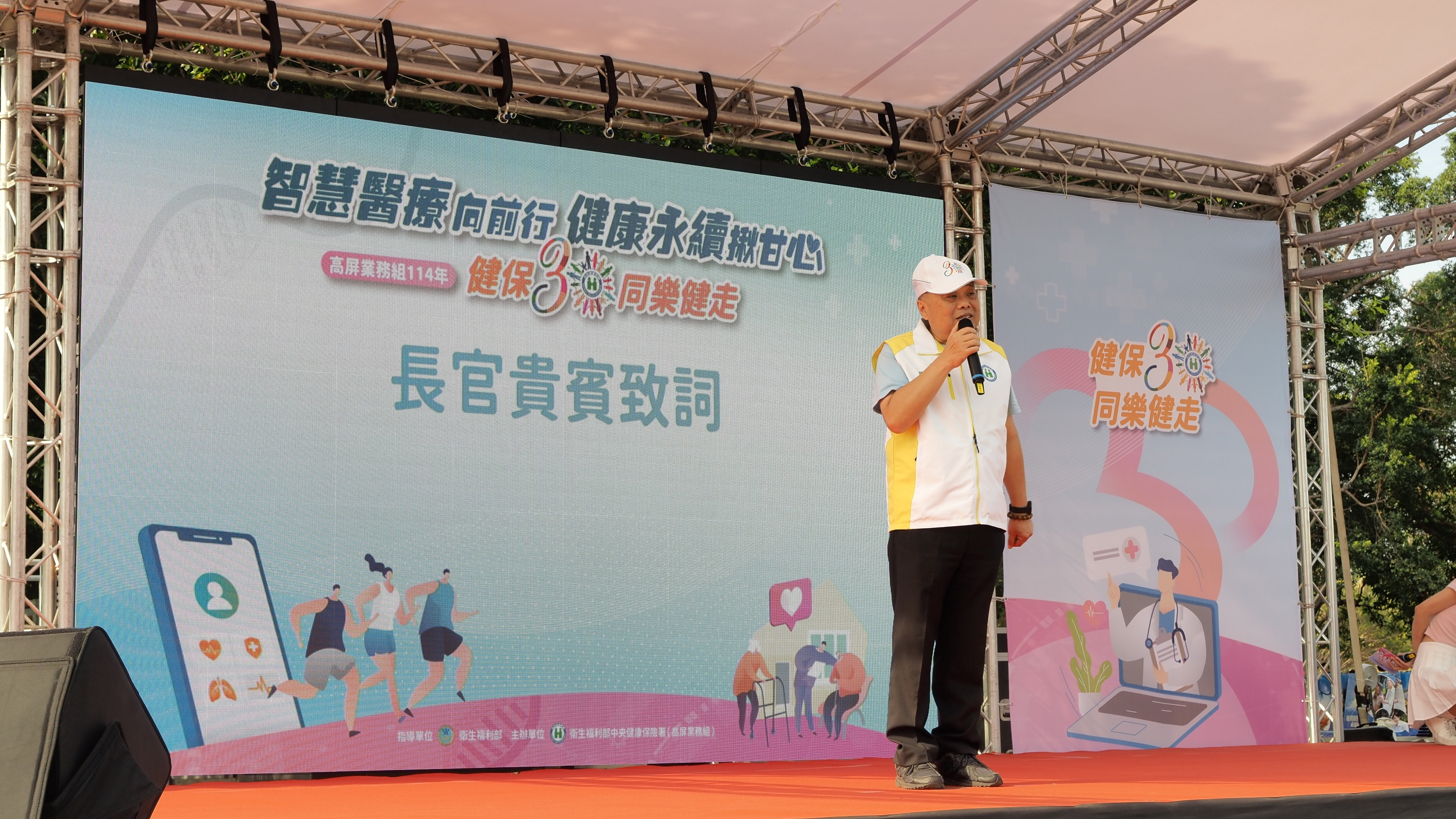 歡慶全民健康保險邁入30週年,中央健康保險署(下稱健保署)高屏業務組今(26)日假高雄衛武營舉辦「智慧醫療向前行•健康永續揪甘心」健保30同樂健走活動,由健保署龐一鳴副署長偕同立法委員、高屏澎轄區醫界團體等機關代表共同鳴笛起走,與全民共同邁向智慧賦能及健康永續之願景。