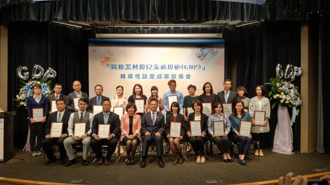 衛生福利部食品藥物管理署(以下簡稱為食藥署)於107年11月5日舉辦「醫療器材優良流通規範(以下稱GDP)輔導性訪查」成果發表會,由食品藥物管理署李明鑫組長蒞臨會場致詞及頒獎,表揚20家(詳附件)今(107)年度主動配合參加醫療器材優良流通規範(GDP)輔導性訪查的廠商,訪查結果共有6家表現優良之廠商及14家熱心參與之廠商,積極努力建立完整品質系統,進一步保障民眾使用醫療器材的品質與安全,其精神值得肯定。