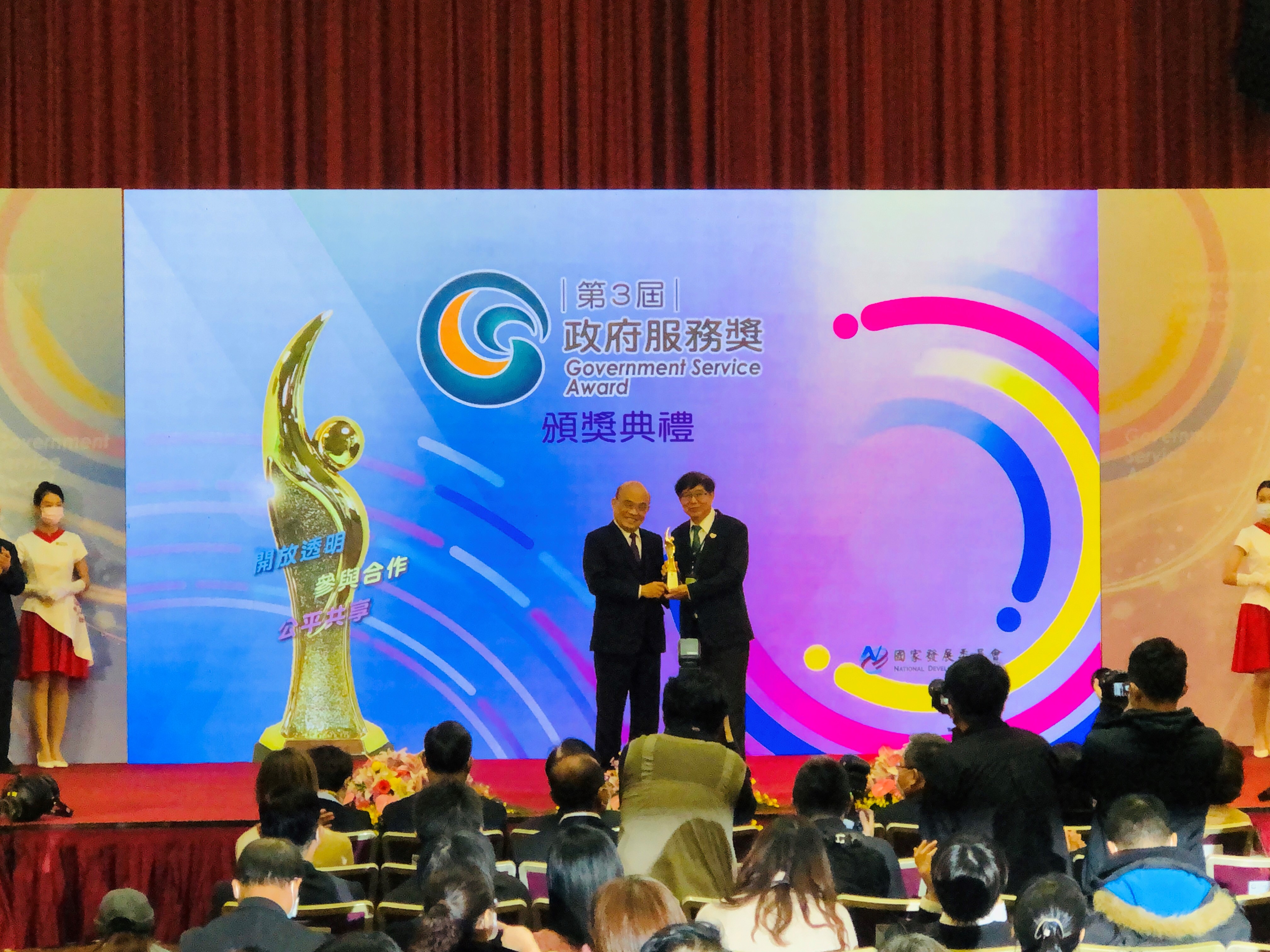 衛生福利部中央健康保險署今年以「健保大數據跨域合作 數位科技防疫新典範」為主題,呈現健保大數據跨域整合、健保卡查詢民眾就醫史與接觸史TOCC註記,口罩實名制及AI醫療輔助模型等創新應用,充分保障民眾就醫權利,持續善用新興科技,活化健保大數據,打造以民眾為中心的健康照護模式,彰顯超前部署科技防疫的防疫策略及保護國人同胞健康所做的貢獻,榮獲第三屆政府服務獎「數位創新加值」獎項的殊榮,今(17)日下午在臺大醫院國際會議中心舉行頒獎典禮,由行政院蘇貞昌院長親自頒獎給健保署李伯璋署長。