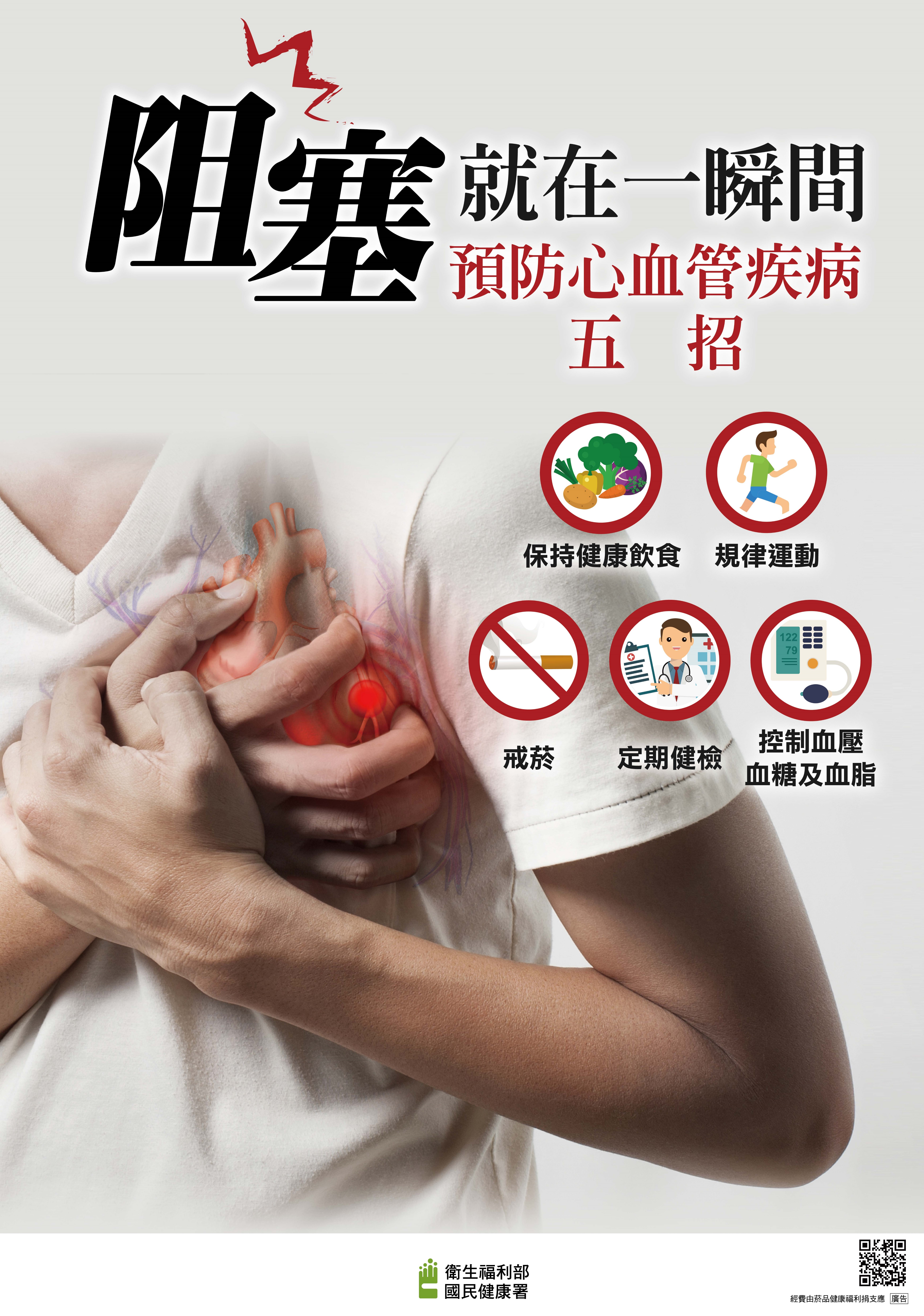 心血管疾病常來的猝不及防,彈指之間即天人永隔!為避免憾事發生在自己和家人身上,國民健康署呼籲從健康生活型態開始做起,如規律運動、健康飲食、戒菸節酒、控制三高、定期健檢等,即是預防心血管疾病的最佳守門員。