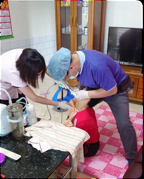 這種情況一直持續,直到有了健保居家牙醫服務,由泓翔牙醫診所王俊凱醫師到府治療,在熟悉的家中小兵降低治療牙齒的恐懼,王醫師使用手提治療機,並配合小兵安全的姿勢,醫師以站姿、蹲式、甚至需跪地找到適合的治療切入點,以耐心溫柔突破小兵心防,順利完成一次次牙齒治療。王醫師回憶,許多特殊需求者,像是漸凍人、肌肉萎縮症患者,因為家人慢慢變老或照護能力不足,普遍都有口腔衛生不良問題。
