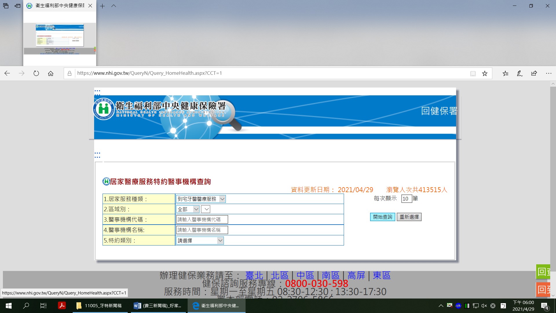 查詢路徑:健保署全球資訊網>健保服務>健保醫療服務>院所查詢>居家牙醫醫療服務院所查詢或牙醫特殊醫療服務計畫及院所網路查詢