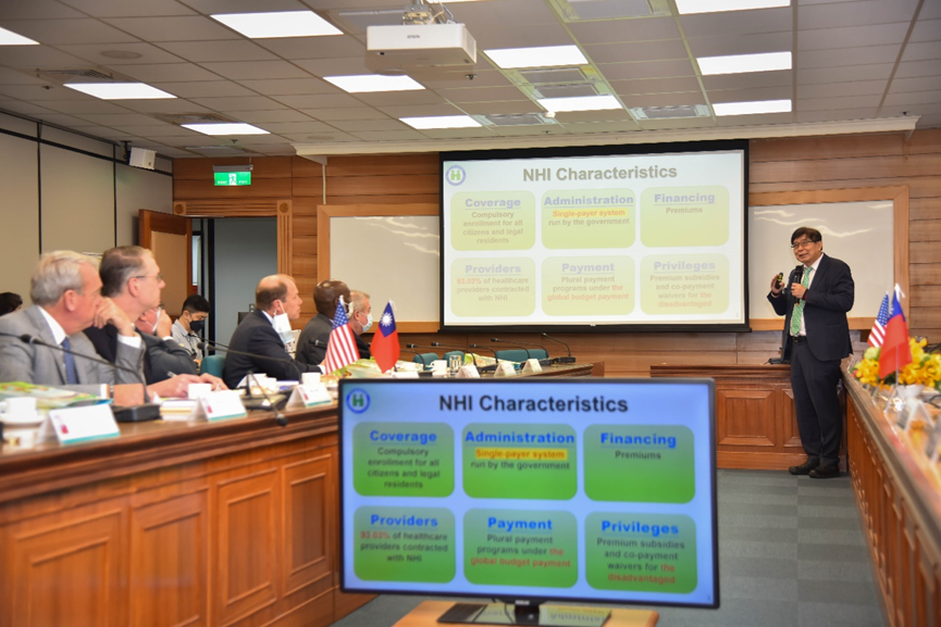 台灣全民健保制度,成功保障全國人民不分貧富皆享有相同之健康保險,使國人免於「因病而貧」或「因貧而病」憂慮,近年來,健保署更強化健保大數據以及數位健康科技的應用,李伯璋署長表示:「美國長期關注台灣健保制度,每年均有參、眾議員及國會議員助理來訪,瞭解台灣健保的成果與挑戰,此次訪賓針對台美雙方關心的健保議題深入交換意見,有鑑於衛生無國界,我們也無私分享台灣健保的經驗。」李伯璋署長全程熱心簡介全民健保自84年3月1日實施以來保障全民健康的成就,及重要政策與措施,並且介紹健保署8月份Springer出版之英文專書。