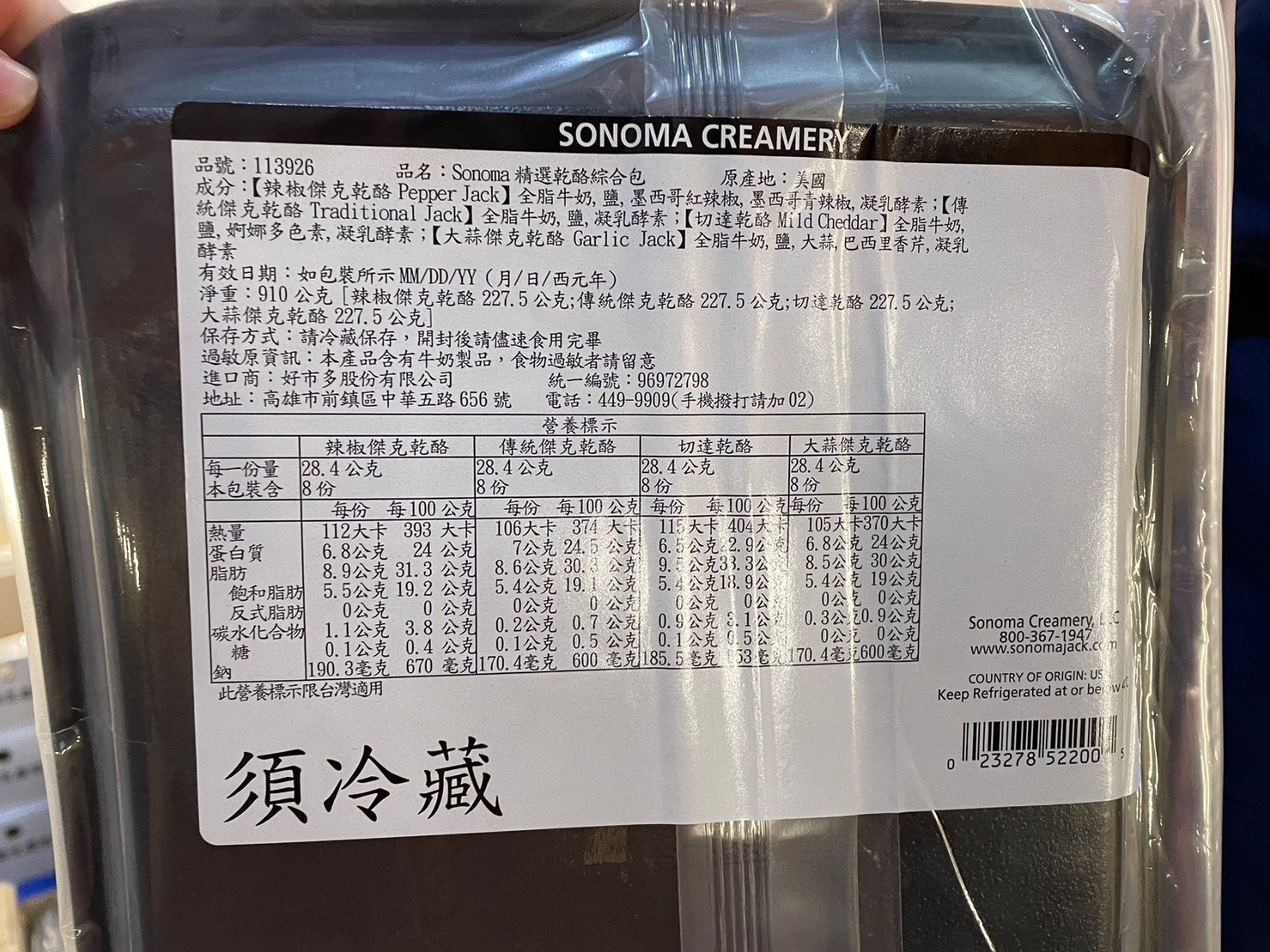好市多股份有限公司(下稱好市多公司)近期向食品藥物管理署(下稱食藥署)報驗「Sonoma精選乾酪綜合包」1批(產地:美國,規格:910公克/包) 」經檢出殘留農藥環氧乙烷(Ethylene Oxide, EtO)與規定不符,該批產品即管制輸入,並依據食品及相關產品輸入查驗辦法,對該公司同產地、同貨品分類號列之產品從加強抽批提高為逐批查驗。