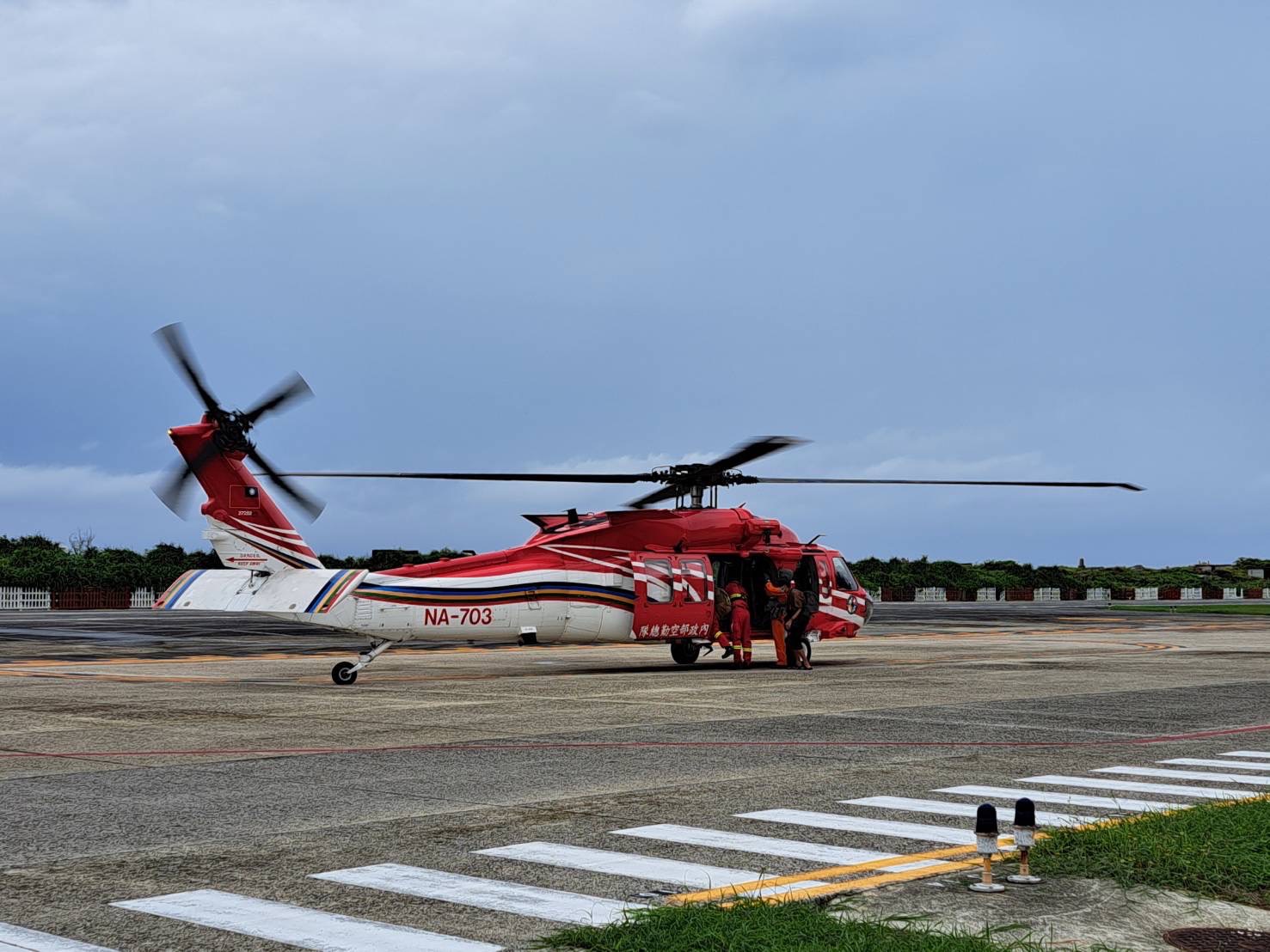 為確保急重症病人生命安全,臺東縣衛生局同時商請台東馬偕與衛生所進行視訊診療,給予醫療處置建議,優先在地穩定個案生命徵象及病況。待天候狀況轉好後,空勤總隊於13:19從台東起飛,13:32到達綠島,13:42從綠島再起飛,13:55抵達臺東,14:07已將病人轉送台東馬偕。