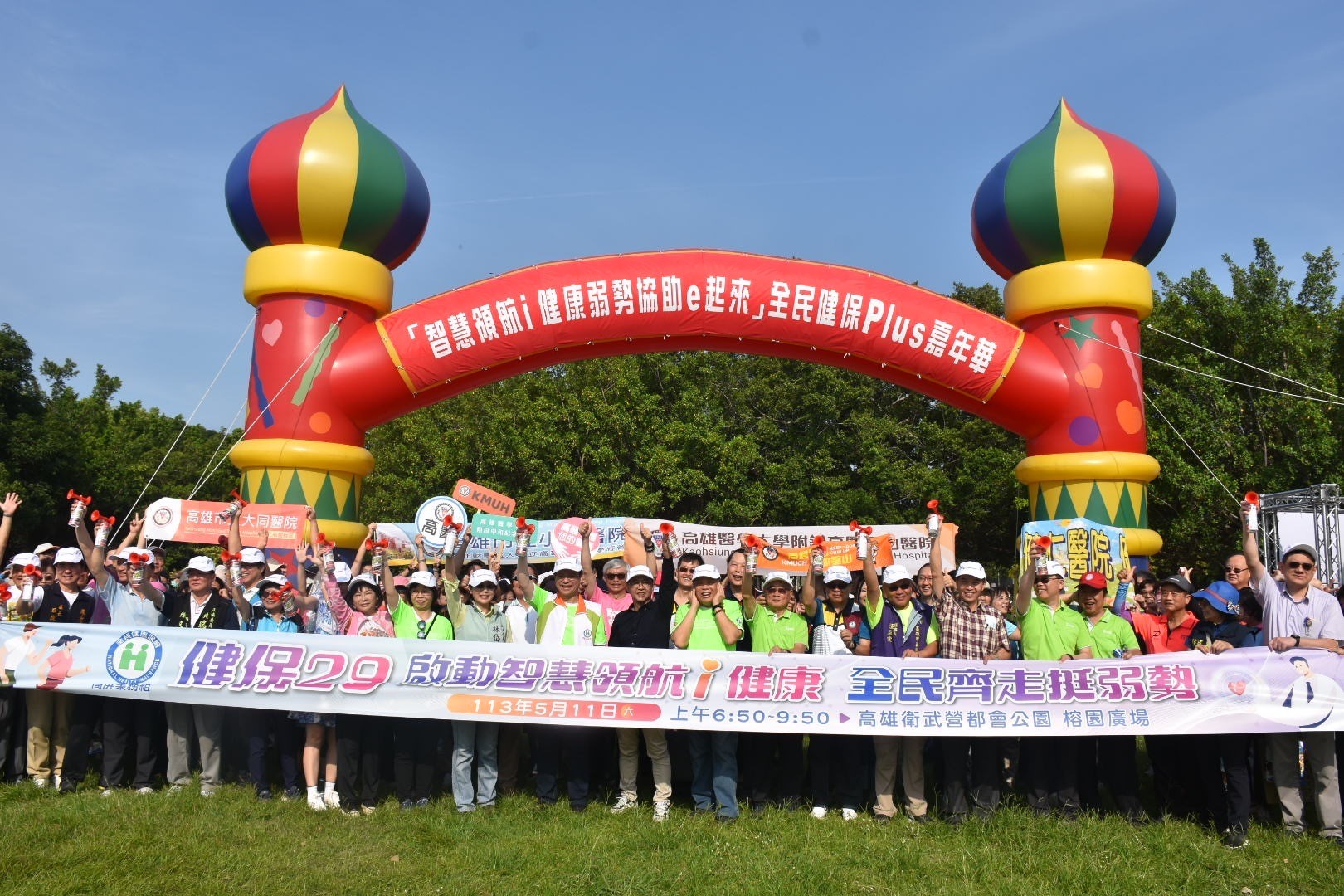 全民健康保險即將邁入30年,中央健康保險署(以下簡稱健保署)高屏業務組今(11)日於高雄衛武營,有「綠色之夢」之稱的都會公園舉辦「智慧領航i健康 弱勢協助e起來」全民健保PLUS嘉年華健走活動。當天健保署石崇良署長親自到場致詞並頒獎感謝各團體,對全民健保的支持及長期付出愛心,援助許多經濟弱勢族群。石署長偕同高雄地區醫事團體、醫療院所及慈善團體等貴賓鳴笛起走,引領所有參與民眾齊步朝向智慧健康、健保永續邁進。