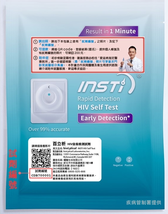 疾管署表示,107至108年「在家愛滋自我篩檢計畫」自去(107)12月1日開跑,截至今年3月31日已服務16,922人次,較106年同期增加4,200人次(25%)。此外,自我篩檢試劑提供地點,除原21個縣市衛生局、5家民間團體提供之定點及自動服務機,今年3月30日起增加紅樓部屋、台灣世界愛滋快樂聯盟、台灣露德協會台北、台中及台東辦公室提供定點服務,可支付200元取得血液或唾液自我篩檢試劑,亦可上網訂購(https://otc.cdc.gov.tw/buy)後選擇鄰近之全家、OK或萊爾富超商支付245元(200元試劑費及45元物流費)取得試劑。無論檢驗結果為陽性或陰性,皆可依包裝指示上傳清楚可辨識的「試劑編號」照片,並登錄檢驗結果及提供轉帳的郵局/銀行帳戶資料,即可領回200元試劑費用。