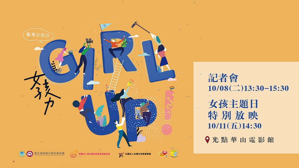 為呼籲各界跳脫刻板印象,重視女孩權益,衛福部社家署於臺灣女孩日(10月11日)前夕,將首次攜手台灣國際女性影展,合作辦理宣導記者會暨巡迴放映,以「Girl Up!女孩力」為主題,精選7部精彩國內外作品,從城市到鄉鎮,全臺走透透,以影像推動性別平權,共同營造友善女孩的社會環境,讓每一個孩子擁有公平機會發展及實現自我的機會。