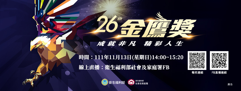 衛生福利部於111年11月13日「國際身心障礙者日」前夕,假財團法人張榮發基金會舉辦「第26屆身心障礙楷模金鷹獎表揚典禮」,由行政院政務委員林萬億及衛生福利部政務次長李麗芬親自向10位得獎者表達衷心的敬佩及祝福,並致贈最高榮譽金鷹獎章與獎座,肯定得獎者跨越障礙、超越自我的積極態度,帶給社會多元共好的正向力量。