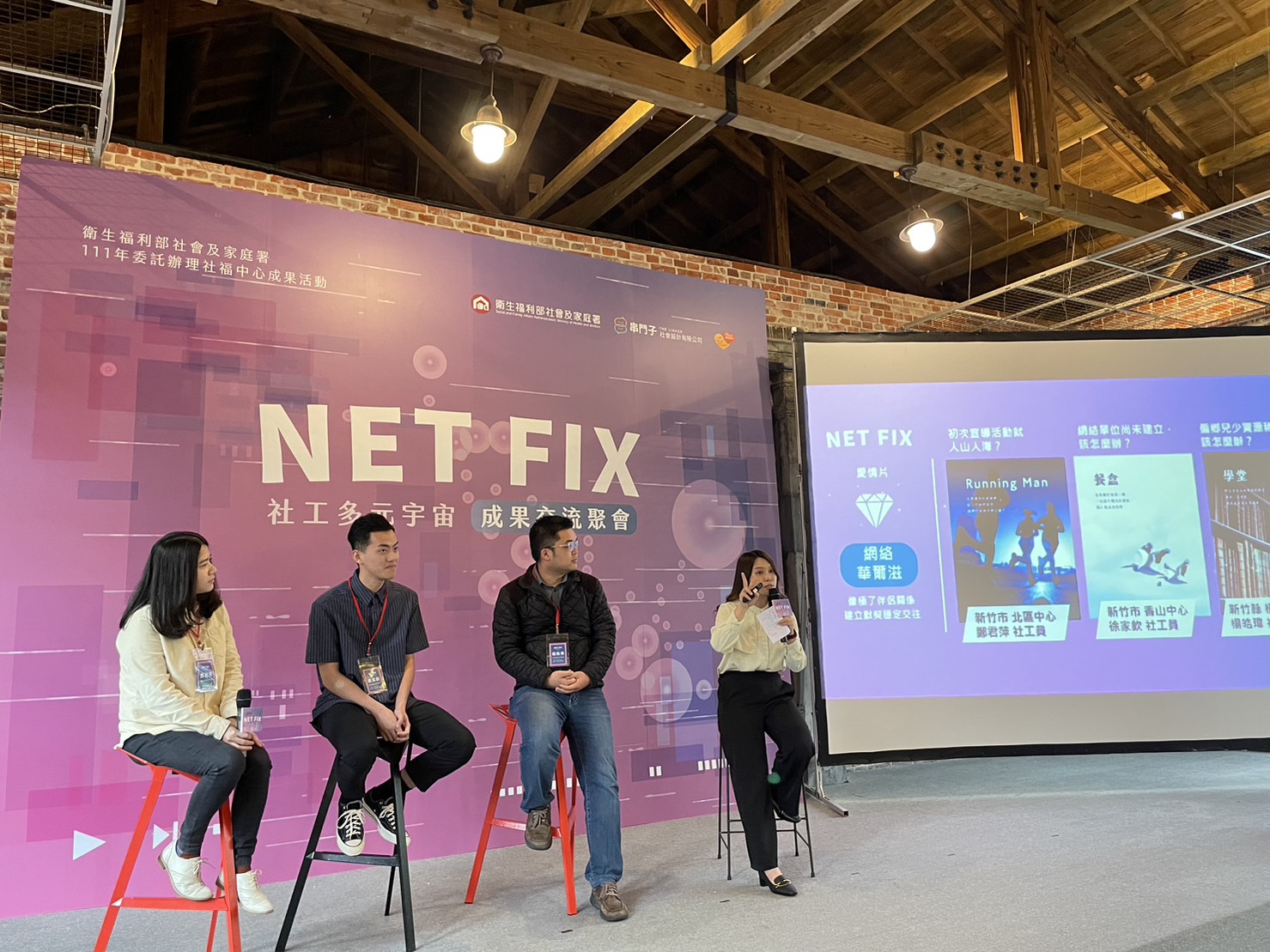 為精進社福中心專業發展與服務效能,透過經驗交流、觀摩學習等方式分享在地服務模式,社家署111年特舉辦社會福利服務中心成果發表活動,整理社福中心服務成果、架設數位策展網站、製作Podcast影音分享,歷經7至9月辦理2場啟動說明會、3場服務萃取工作坊,於12月27日、29日舉辦「NET FIX 社工多元宇宙」成果交流聚會,邀請22名社福中心代表化身為導演,以「家庭服務方法」、「緊急危機事件處遇」、「網絡與在地經營」、「團隊凝聚與培育」四大議題進行經驗分享與交流,凝聚參與者服務意識,活動總計241人次參與。