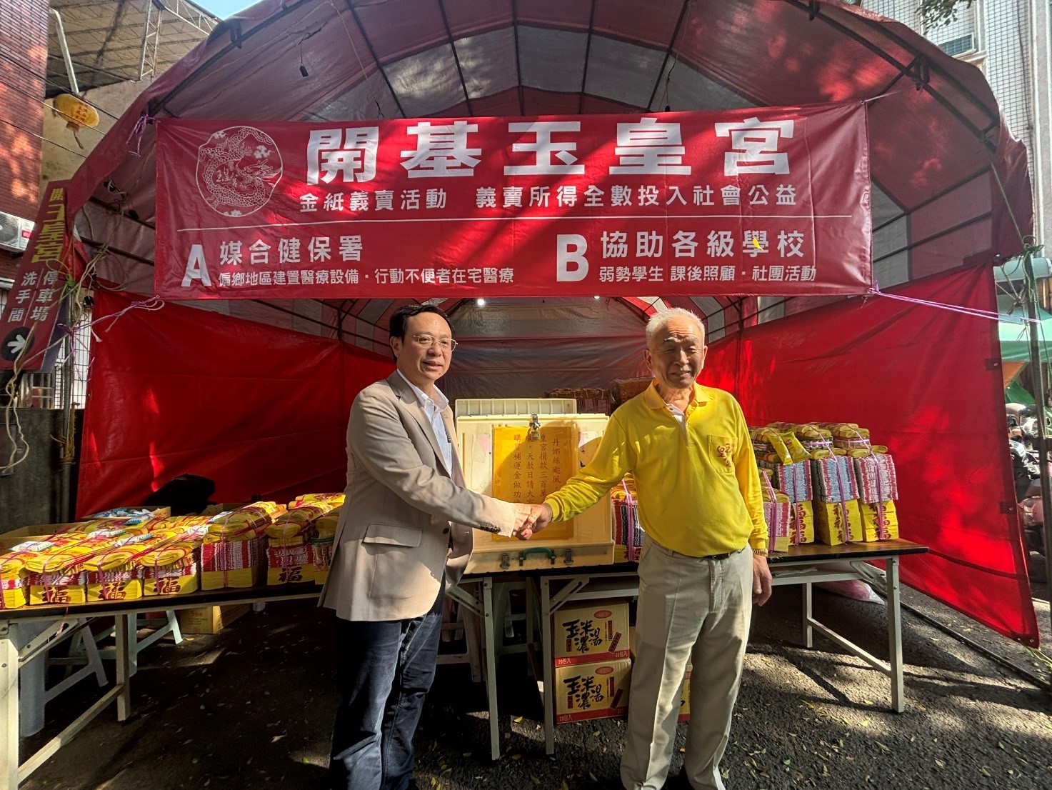 接著石崇良部長特別代表衛福部至玉皇宮參拜,祈求國泰民安並感謝涂大松主委和衆多董事、信衆的支持,多年來看見偏鄉的需求,優化醫療設備及環境。過去六年玉皇宮與健保署合作,累積捐款總額已達 9,200 萬元用於深耕醫療及守護偏鄉孩童教育。玉皇宮涂大松主任委員更表示,準備將春節義賣金紙所得預計捐贈 650 萬元。這筆款項將直接挹注建置偏鄉與在宅醫療的關鍵的醫療設備。