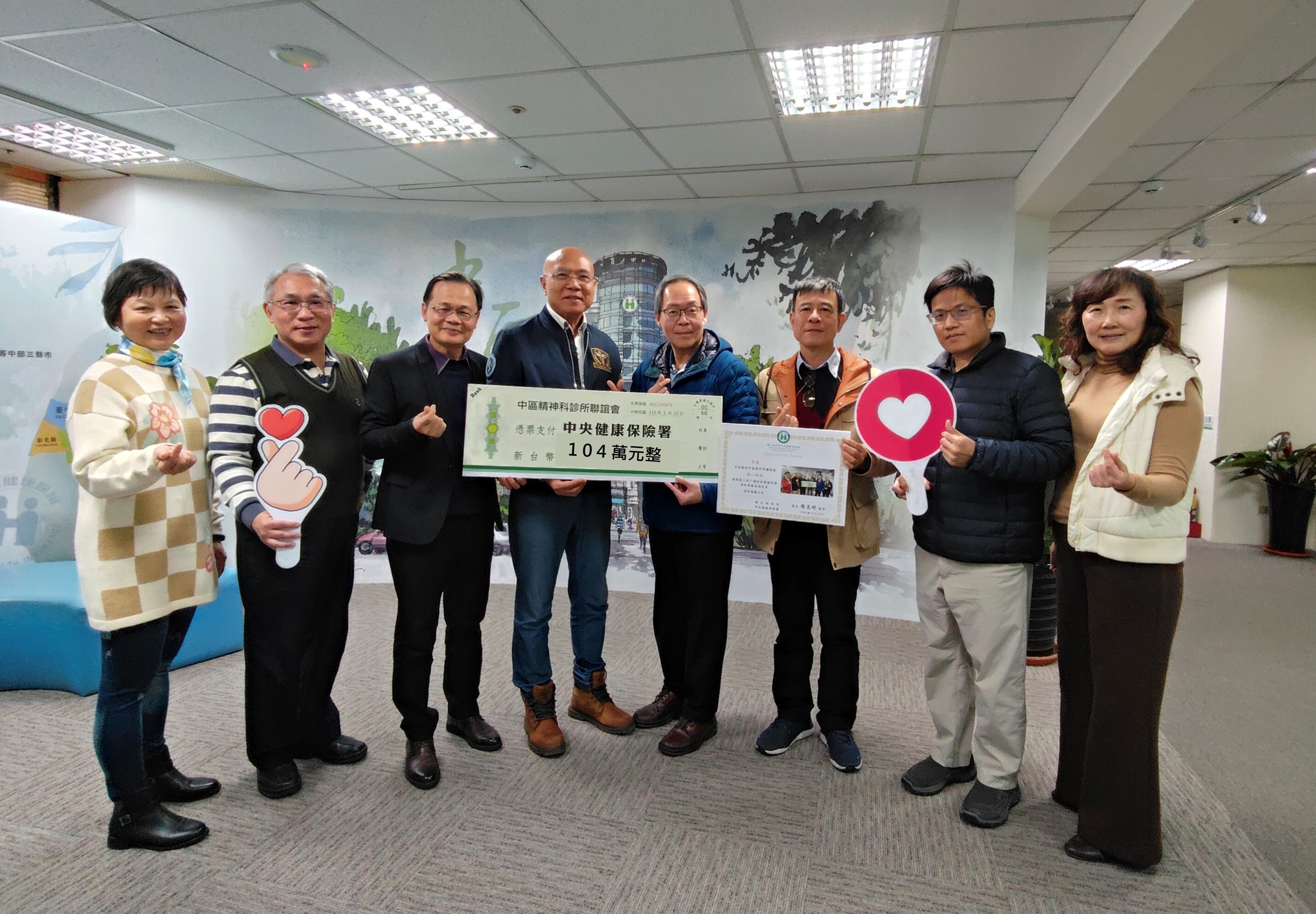 回顧緣起,早於民國95年精神科劉昭賢、王志中等醫師於臺中市自行開業,從門診中經常接觸到不少遭逢困境,且無力繳納健保費的民眾,深刻感受需要社會伸出援手協助弱勢,遂號召中彰投地區精神科基層診所醫師,共同成立「中區精神科基層診所聯誼會」,以團體力量長期捐助健保愛心專戶,實踐醫者之社會責任。今(115)年聯誼會透過總召馮尚淳醫師號召下,由會員響應得到善款達104萬元,20年未有間斷,累計金額已近900萬,成為健保愛心專戶穩定且持續的民間支持力量。