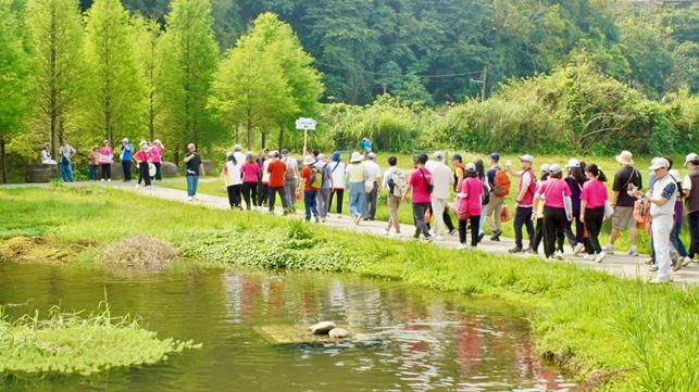本次健走路線約2.4公里,鳴笛聲響起,張禹斌副署長偕同醫院醫療服務審查執行會北區分會翁順隆主委、北區醫院院長聯誼會、西醫、中醫、牙醫師公會及職業總工會理事長等貴賓,引領民眾向前行。沿途經大溪月眉溼地生態公園落羽松大道、山豬湖親水園區及中庄吊橋,並安排專人生態導覽,除風景優美之外,也讓民眾有更一步認識溼地多元生態,獲得民眾讚聲連連。