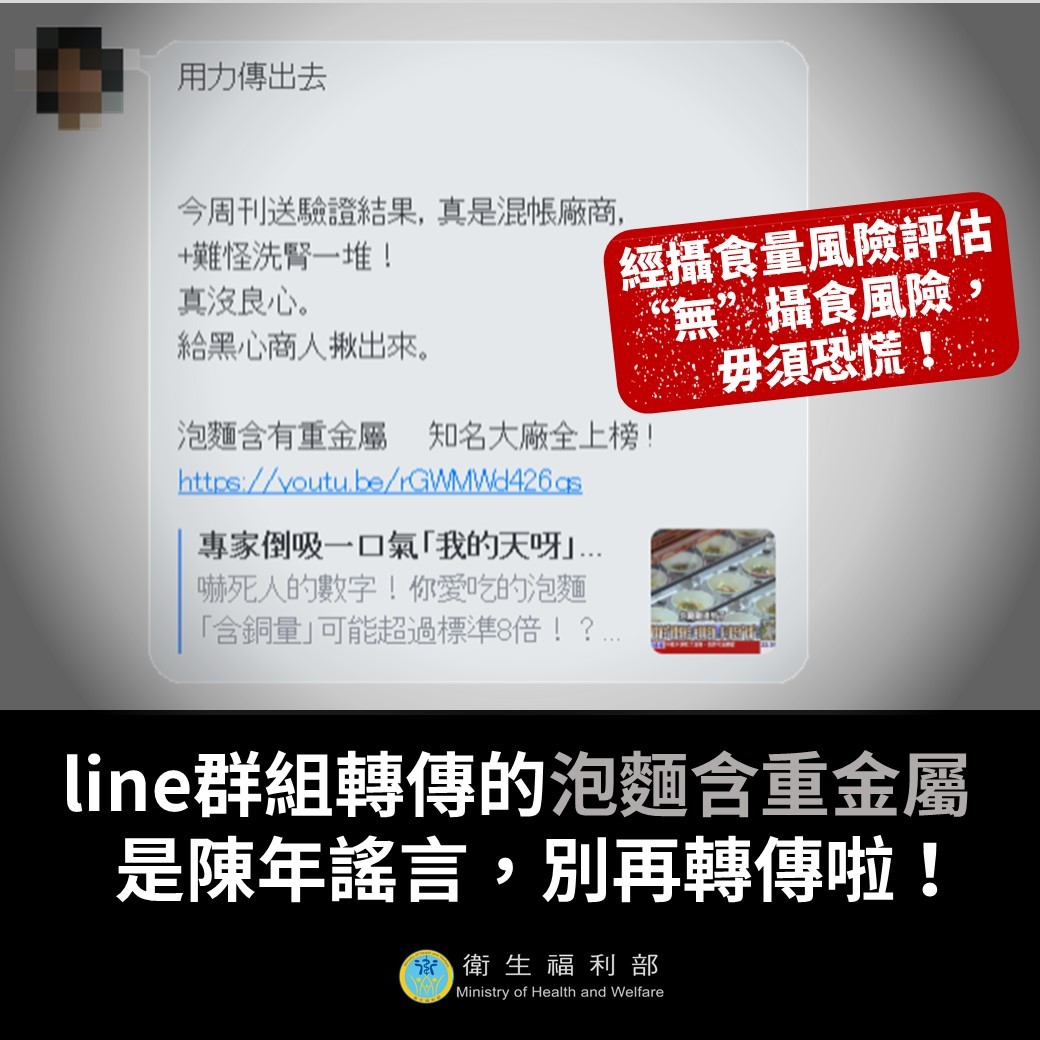有關近日line群組轉傳「泡麵含重金屬」的影片: