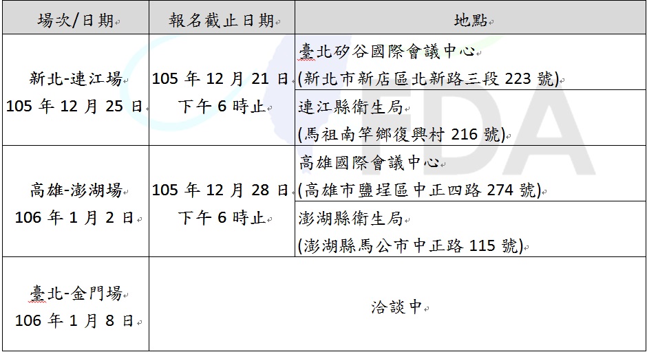 即日起受理報名,報名方式分為一般民眾及團體報名,團體包括已登記立案之財團法人、社團法人、公會、協會、學會,未立案之團體可採一般民眾方式報名。請至衛生福利部食品藥物管理署網站(http://www.fda.gov.tw)首頁公聽會專區線上報名或傳真報名,傳真電話:(02)3322-9860。公聽會日期及地點如附件: