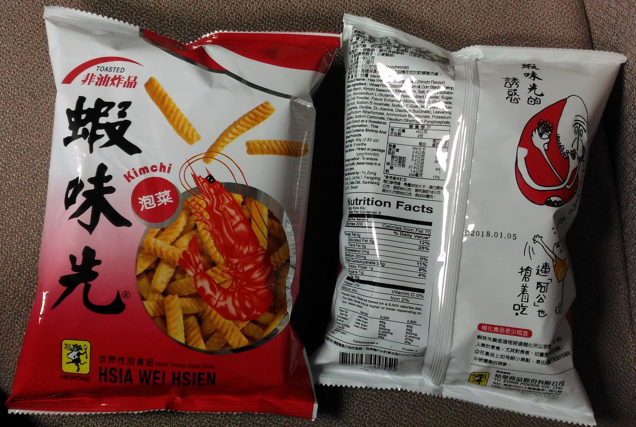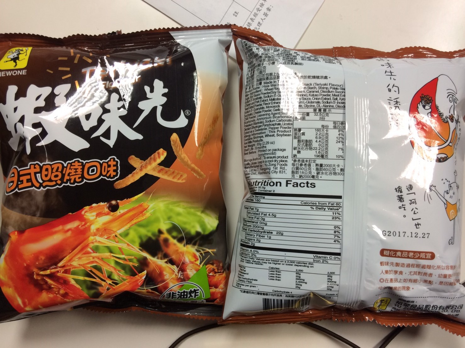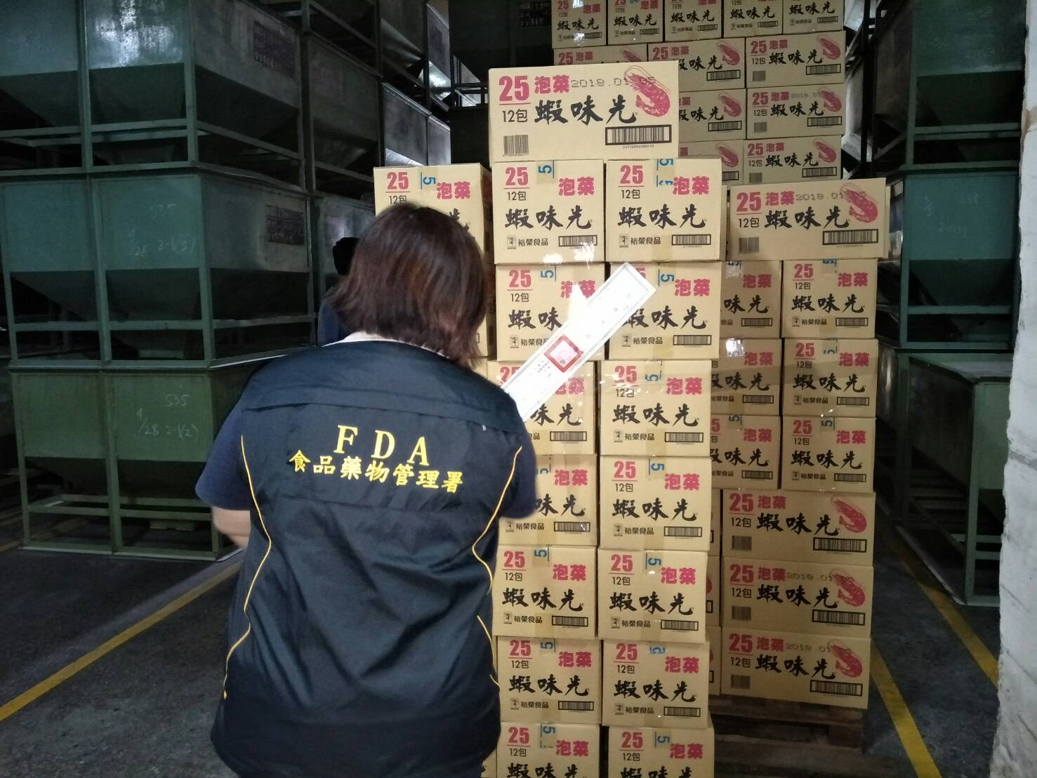 食品藥物管理署(下稱食藥署)會同高雄市政府衛生局、法務部調查局高雄市調處及高雄地方法院檢察署稽查高雄市大寮區裕榮食品股份有限公司,於現場查獲逾期柴魚精粉、無水檸檬酸及紅麴粉等原料,用於生產「蝦味先日式照燒」、「蝦味先蜜烤魷魚」、「蝦味先泡菜」、「蝦味先墨西哥煙燻」及「發芽大豆養生粉(紅麴)」等5項產品,現場予以封存過期原料及產品共計約2,371.5公斤。