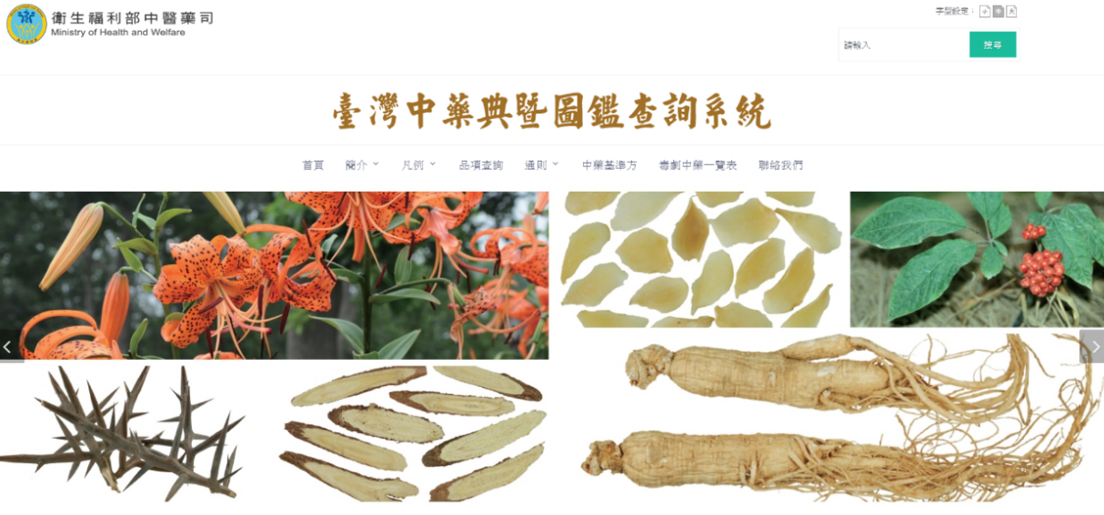 The third edition of the Taiwan Herbal Pharmacopeia was published in November 2018 and officially implemented on June 1 2019, incorporating 55 new TCM material items and 2 TCM concentration preparations, bringing the total to 357 items. This book features a collection of TCM materials that can be found in Taiwan, and adopted new developments in green chemistry analytical methods. After validation experiments, they will be incorporated into future revisions of Taiwan Herbal Pharmacopeia, where scientific, systematic methods are applied to enhance quality control and regulations of TCM materials. The English version of the third edition of the Taiwan Herbal Pharmacopeia was published in December 2019, thereby fostering the internationalization of Taiwan’s TCM, as well as facilitating developments in the TCM industry. Further, both the pharmacopeia and illustrations were provided online with the launch of the Taiwan Herbal Pharmacopoeia and Illustration Online Database (www.cmthp.mohw.gov.tw) (Figure 3-9). The contents of the second and third editions and pictures of Chinese medicine materials are offered, along with graphic and textual reference comparison data, which makes the pharmacopeia convenient to query and use through the Internet.