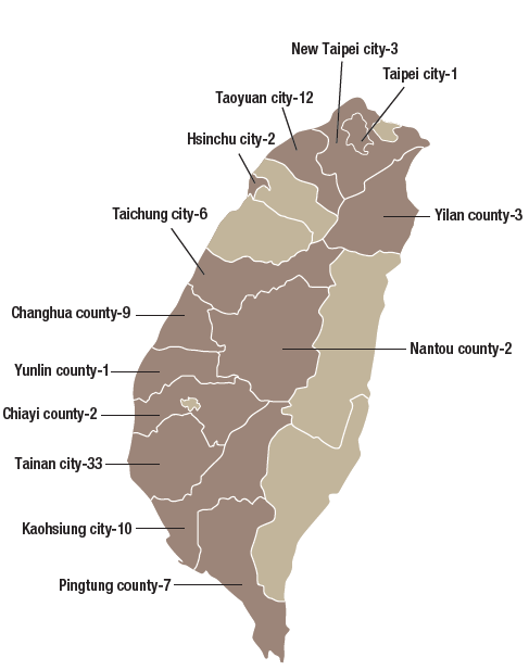 Figure 3-4: Distribution map of GMP TCM pharmaceutical factories in Taiwan