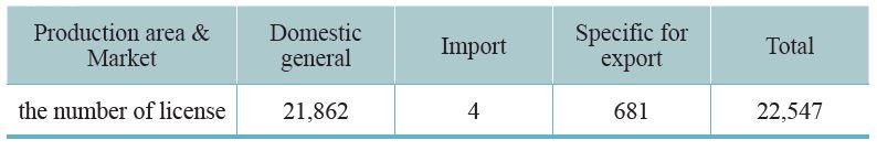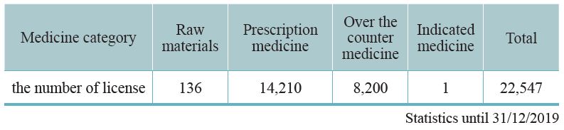 Since 1970, our country requires that all TCM preparations must be licensed. The Central Authority of Health Administration undertakes a complete auditing system that includes pharmaceutical factory inspection, review of documentation, and field inspection. The licenses will be granted after the professional standards have been met. As of 2019, 91 GMP certified TCM pharmaceutical factories in Taiwan and 22,547 TCM preparation licenses have been granted. Half of these licenses are for physicians’ prescriptions, 8,200 licenses are for selling over the counter (OTC) medicine, thus facilitating public purchases from pharmacies. A few licenses are for export (Table 3-1, 3-2). This system is consistent with Western medicine administration.