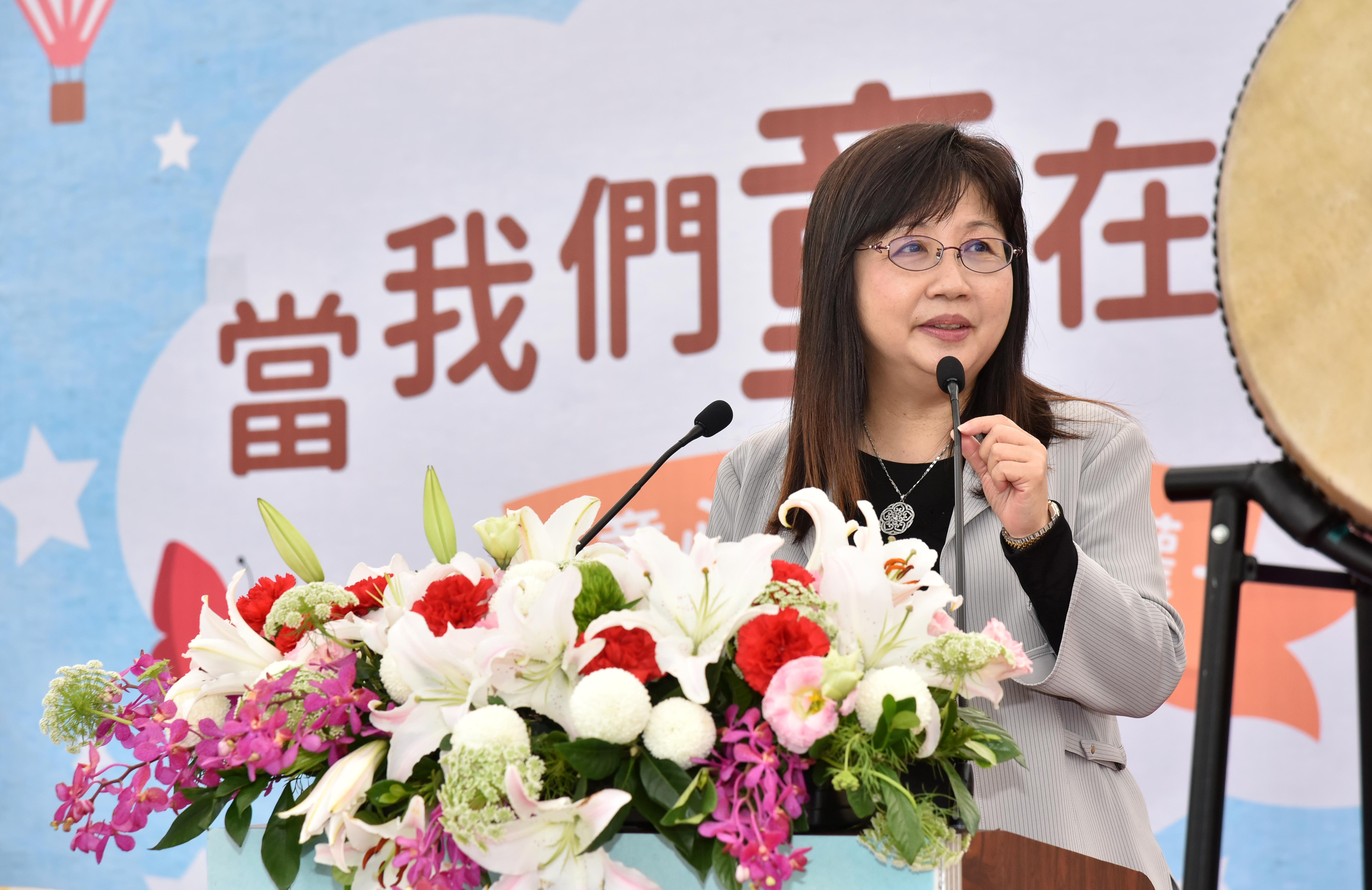 衛生福利部呂次長表示,「遊戲」是孩子們學習與發展重要的媒介,也是兒童應享有的權利,在聯合國《兒童權利公約》及《身心障礙者權利公約》都有明定,因此,所有兒童休閒、娛樂以及遊戲權益,都應該予以保障。在今天的活動場地─舞蝶館旁有一個佔地2千坪的遊戲場,是我國目前最大的共融兒童遊戲場,除了適合各年齡層的各種遊具外,並提供一般兒童與身心障礙兒童一起同樂的遊戲設施。次長特別叮嚀小朋友們在玩樂當中要學會彼此尊重、共享遊樂設施,讓所有小朋友可以快樂地一起遊戲。