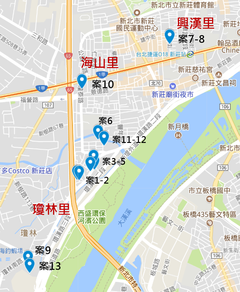- 新北市新莊區本土登革熱病例分布圖
