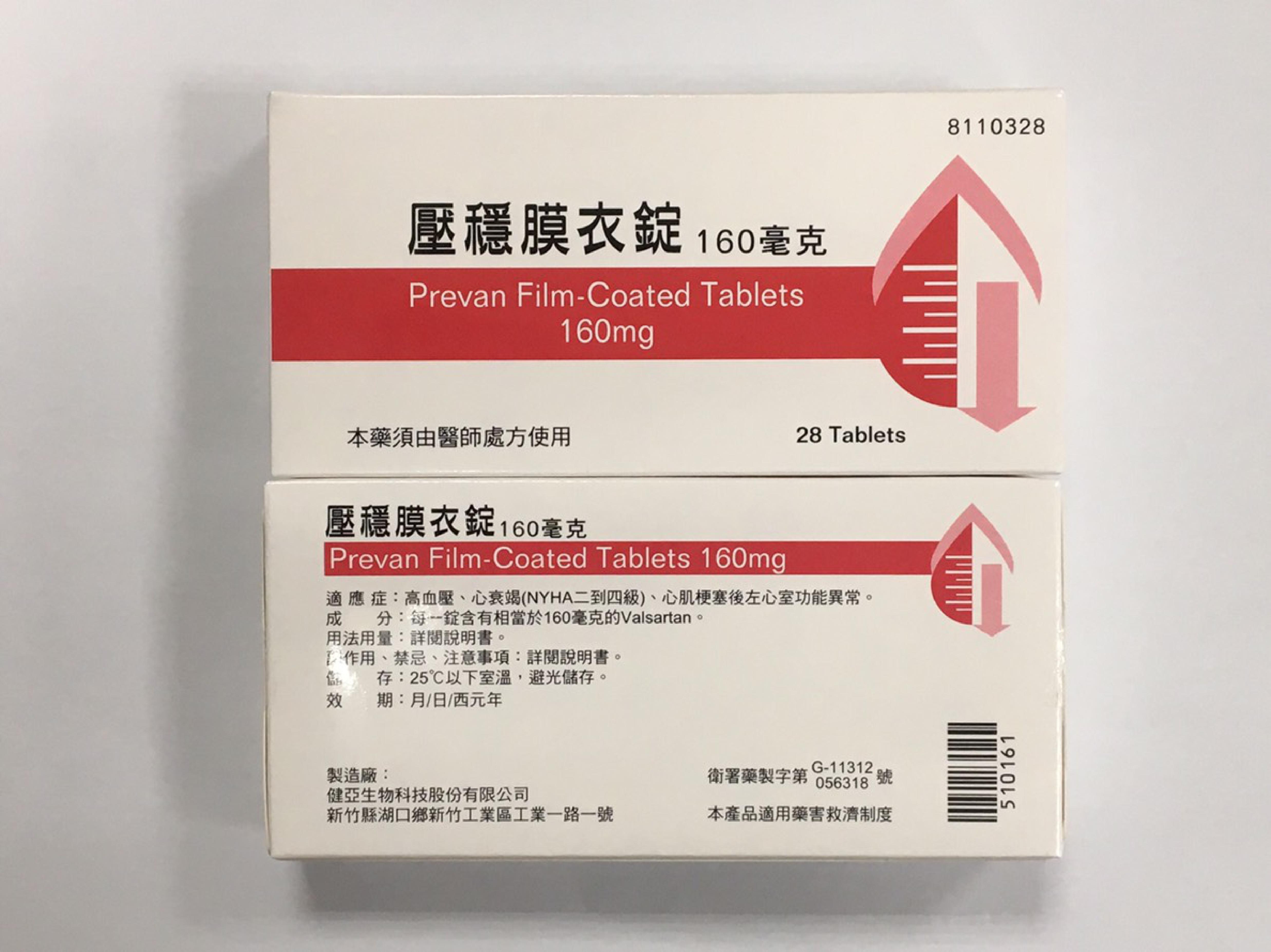 衛生福利部食品藥物管理署(以下簡稱食藥署)抽驗發現,印度Mylan Laboratories Limited所生產之valsartan原料藥,有部分批號檢出動物致癌性成分「N-亞硝基二乙胺」(NDEA),經查我國健亞生物科技股份有限公司有輸入使用,該公司並已決定自107年11月19日起,全面回收使用該原料藥來源之製劑藥品,包括「壓穩膜衣錠80毫克(衛署藥製字第056320號)」(效期111年7月30日前)及「壓穩膜衣錠160毫克(衛署藥製字第056318號)」(效期108年11月4日前)藥品。食藥署並於同日請業者即時通知醫療機構及藥局立即下架停止供應,於1個月內(107年12月19日前)完成回收,請衛生局督導下架回收事宜。另提醒正在使用該藥品的患者,該藥品主要用於高血壓等需定期服藥控制之疾病,故不建議任意停藥,應儘速回診時,與醫師討論,處方其他適當藥品。