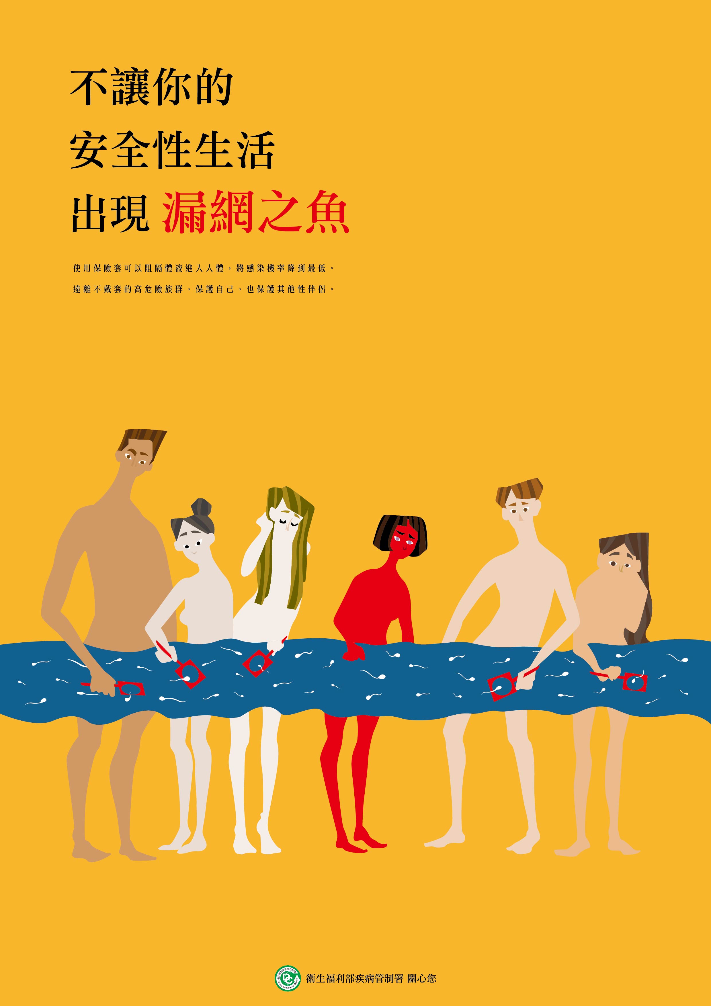疾管署表示,本次榮獲前三名的作品主題及學校分別如下:(1)第一名:「不要讓你的性生活出現漏網之魚」(國立斗六高級家事商業職業學校);(2)第二名:「接納,才能改變」(國立南投高級中學);(3)第三名:「主動防禦」(私立復興高級商工職業學校)。此外,最佳創新獎、最佳設計獎及佳作得獎同學,也以預防愛滋、零歧視、及時治療等正面防疫知識為概念進行創作,透過年輕族群的創新觀點與呈現,擄獲評審青睞。
