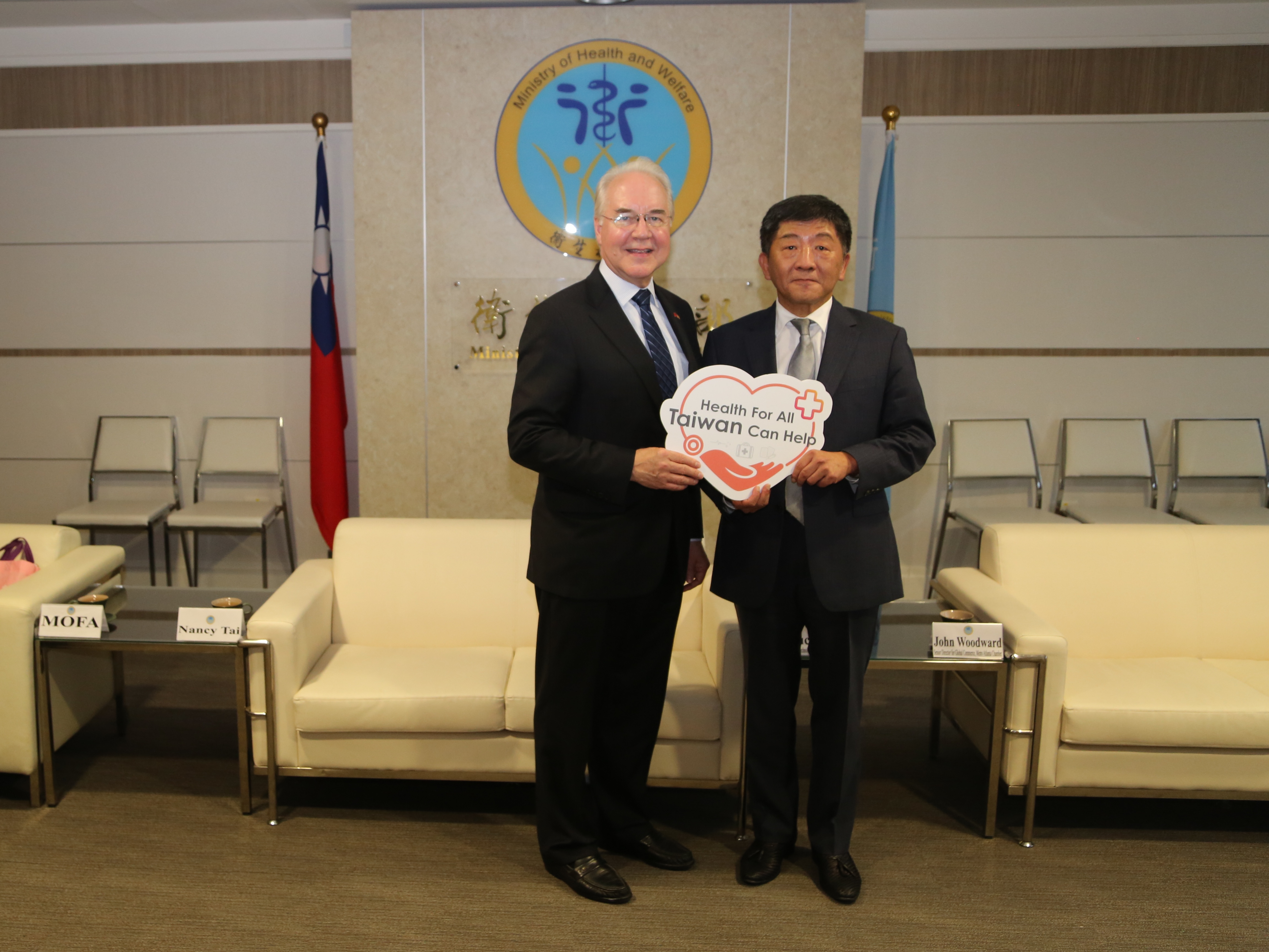 陳部長於本(108)年4月30日會晤美國前衛生部長湯姆.普萊斯(Dr. Thomas E. Price)醫師,普萊斯醫師高度肯定臺灣在國際醫衛之貢獻,歷年來致力協助各國實現聯合國永續發展目標及WHO全民均健(Health for all)之願景,亦表達強力支持台灣參與包括WHO在內的全球衛生相關組織,陳部長感謝渠持續以具體行動支持我參與WHA,並盼雙方未來持續攜手維護全球衛生安全。