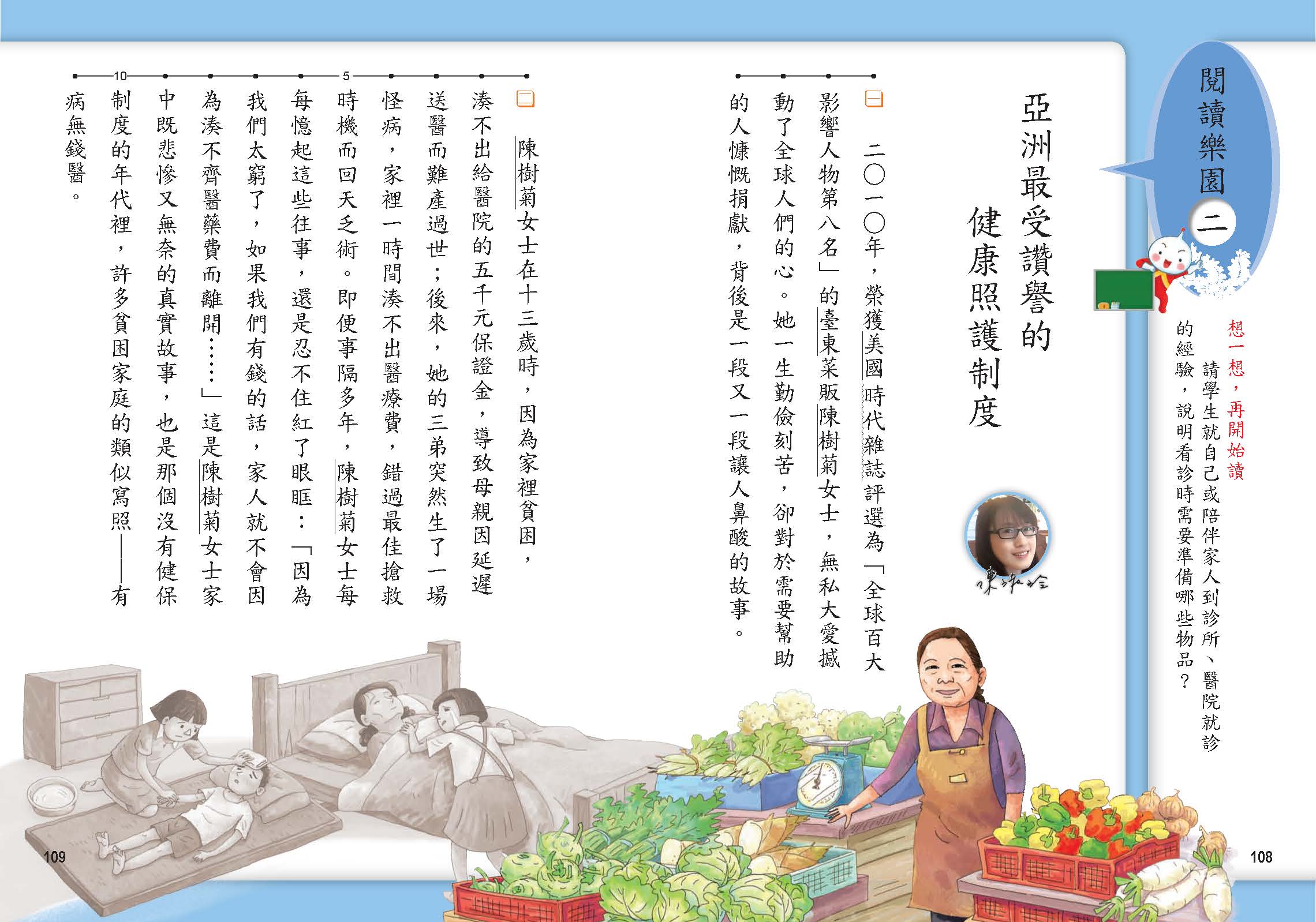 翰林出版公司表示,這篇文章是以陳樹菊女士的兒時經驗切入,在沒有健保的時代,許多貧病家庭面臨「沒錢救命的艱苦」,但在健保開辦後,集合眾人的力量,落實平等就醫的權利;也提到目前的資訊科技發展,讓學生初步認識「健保醫療資訊雲端查詢系統」與所帶來的便利,進而能對「分級醫療」更具信心;並瞭解「健康存摺」的功能與優點,可以加強自我健康照護的能力。