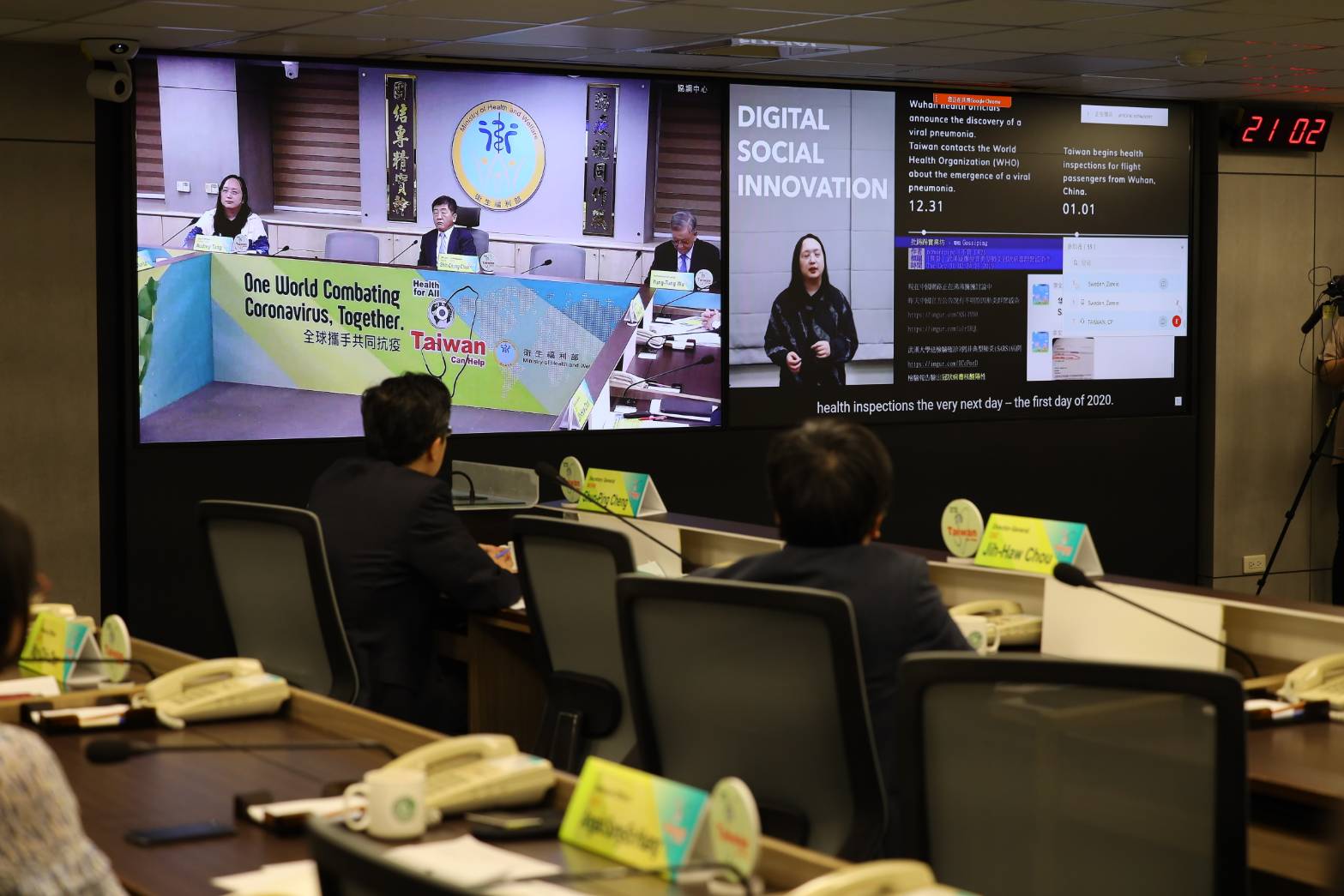 論壇中由行政院唐鳳政務委員分享我國運用數位科技進行防疫的經驗,並由疾病管制署周志浩署長針對COVID-19防治策略檢討,深入討論因應本次疫情的各項防疫措施、專案包機及風險溝通,同時強調我國參與WHO對全球共同防範COVID-19的重要性與必需性。在座亦有吳運東無任所大使、本部何啟功次長、鄭舜平主任秘書、劉麗玲技監及外交部國際組織司陳龍錦司長。