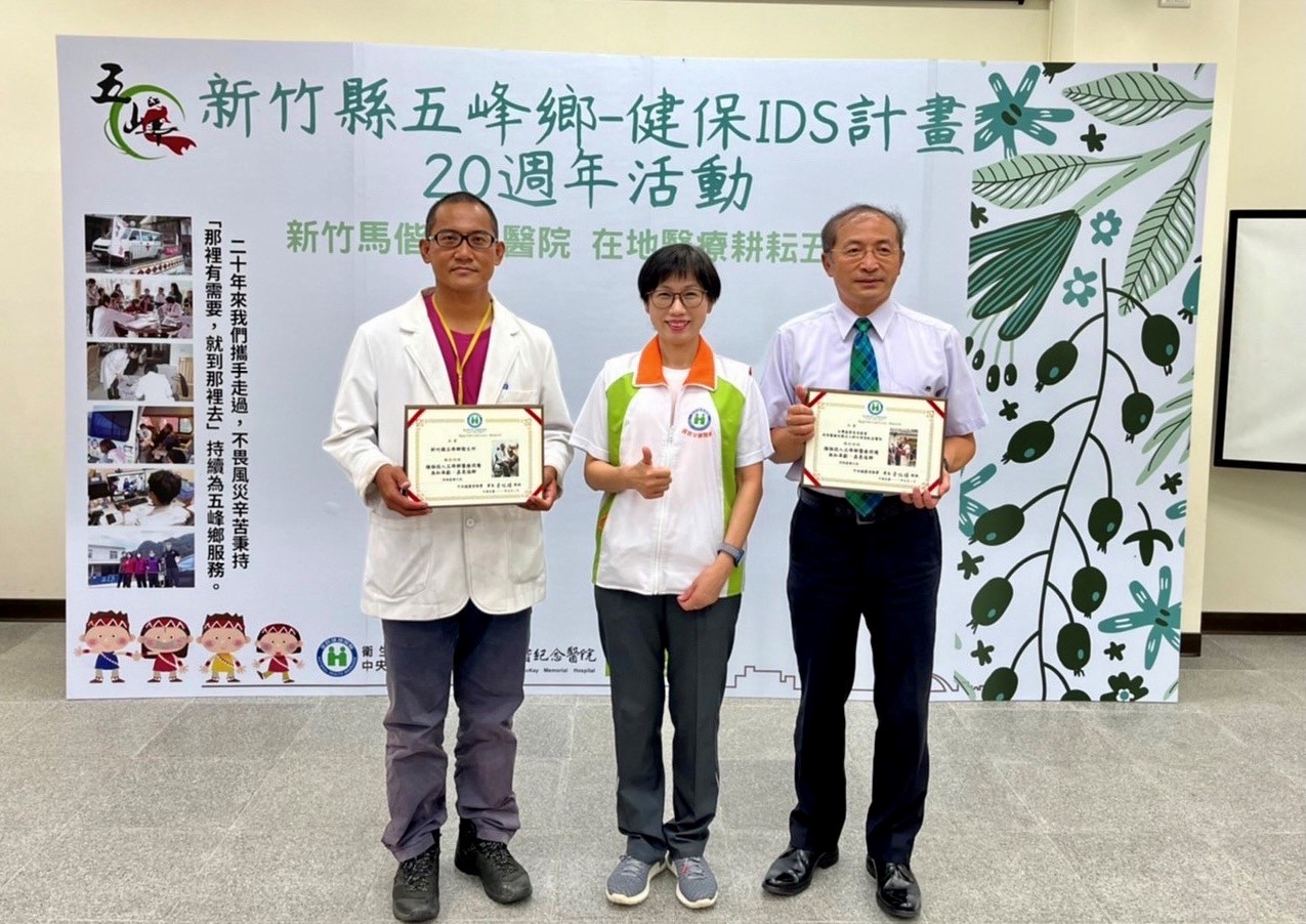 中央健康保險署與新竹馬偕紀念醫院於今(2)日前往新竹縣五峰鄉,舉辦「新竹縣五峰鄉-健保IDS計畫20週年活動」,也響應行政院2025年消除C肝政策,於五峰鄉衛生所擴大肝炎篩檢服務。近幾年因應COVID-19疫情,新竹馬偕紀念醫院更是全力配合健保署遠距醫療給付計畫及虛擬健保卡政策,為原鄉民眾服務,20年來投入五峰鄉IDS成果卓越,當地居民滿意度高達九成以上,健保署北區業務組張温温組長特頒發感謝狀,高度肯定新竹馬偕紀念醫院IDS承作團隊長年來深耕於五峰鄉的服務精神與成果。