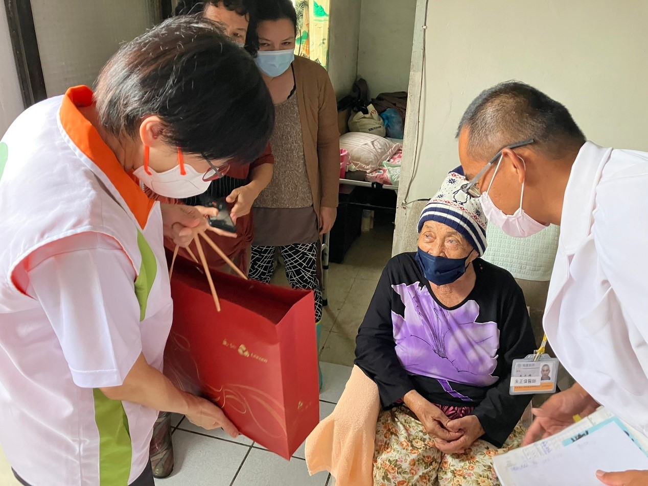 另外,健保署北區業務組張温温組長也在新竹馬偕紀念醫院陪同下,至桃山文化健康站拜訪邱婆婆(化名),婆婆原本由家人輪流上山照顧,需仰賴IDS承作團隊定期送藥到府及衛教指導等服務。但在今(111)年4月,婆婆的家人因確診COVID-19隔離,致婆婆照護上有困難,護理師發現這個狀況並與服務員討論後,立即提供送餐服務與相關居家照護及醫療資源給予必要協助,婆婆對於IDS醫療團隊在疫情影響正常生活下,適時伸出援手提供照護,表達感激之意,也感謝中央健康保險署及IDS團隊特上山拜訪致上溫暖關懷。