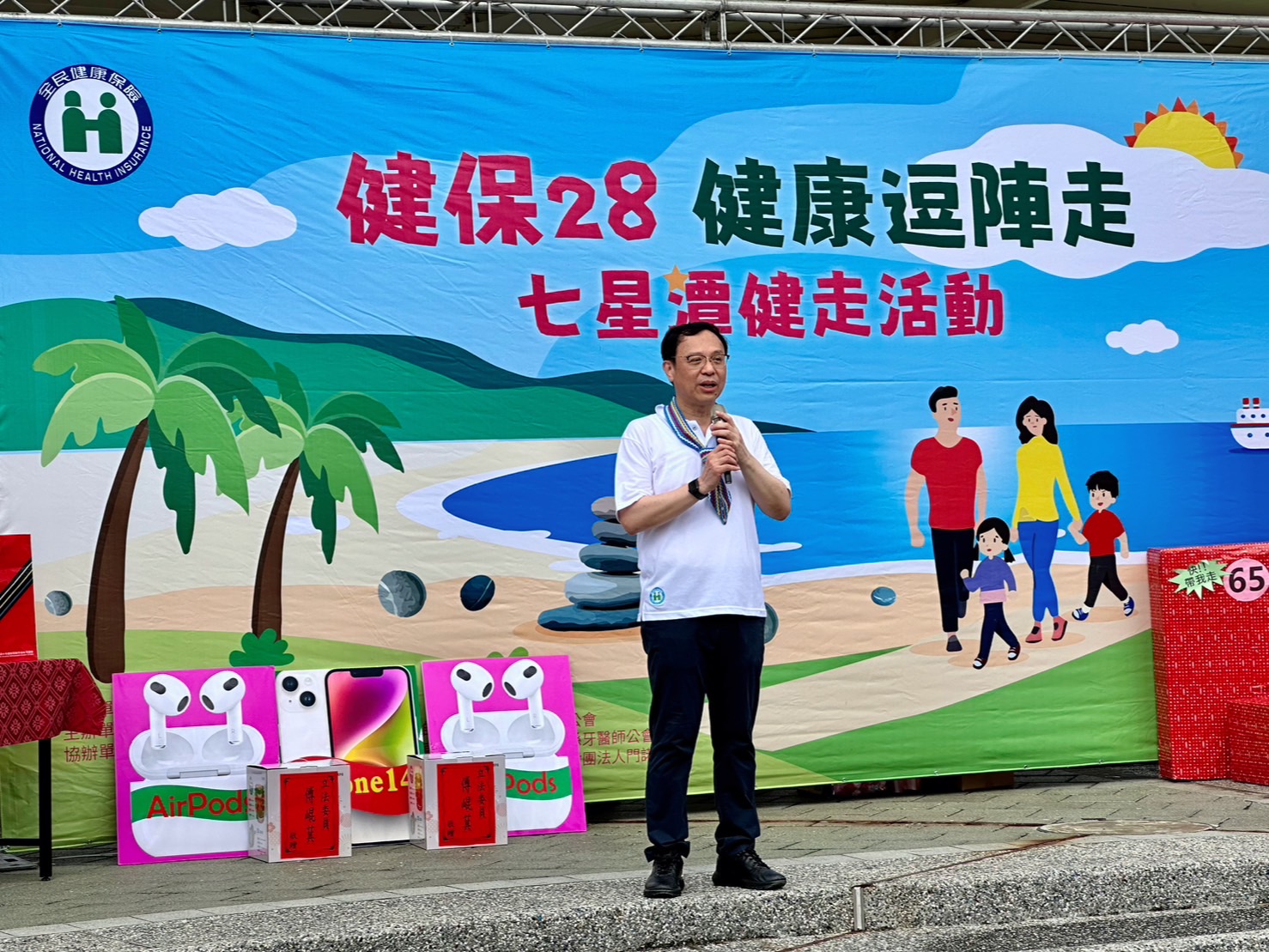 為歡慶全民健保28週年,中央健康保險署於112年6月10日(星期六)在花蓮七星潭賞星廣場,協同花蓮縣總工會、花東二縣西、中、牙醫師公會等公私單位,跨機關攜手辦理,盛大舉行「健保28 健康逗陣走-七星潭健走活動」,健保署石崇良署長率領全署150位科長級以上主管團隊,與花蓮在地鄉親共同為健康而走、珍愛健保,提升民眾健康運動樂活的觀念。