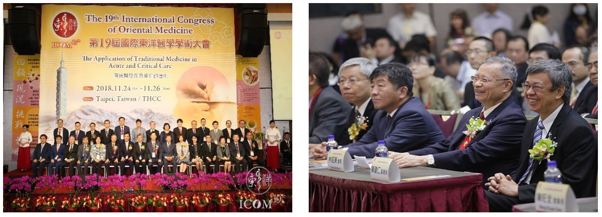 To broaden the international influence of Taiwan's traditional medicine, the Ministry has proactively attended international conferences on traditional medicine, including those of the International Society of Oriental Medicine (ISOM), the Consortium for Globalization of Chinese Medicine (CGCM) and the Good Practice in Traditional Chinese Medicine Research Association (GP-TCM RA). Particularly, the Ministry occupies a Representative Director's seat in ISOM, and we have actively participated in the society's events over the years (Figure 4-2). Taiwan has held 5 International Congress of Oriental Medicine (ICOM) conferences. In 2017, we won the first Taiwanese presidency in more than 40 years. We hosted the 19th International Congress of Oriental Medicine (ICOM) in 2018. The Vice President gave a speech at the conference. More than 1,000 experts and scholars from 7 countries participated. The development of traditional medicine in Taiwan has received international attention and recognition.
