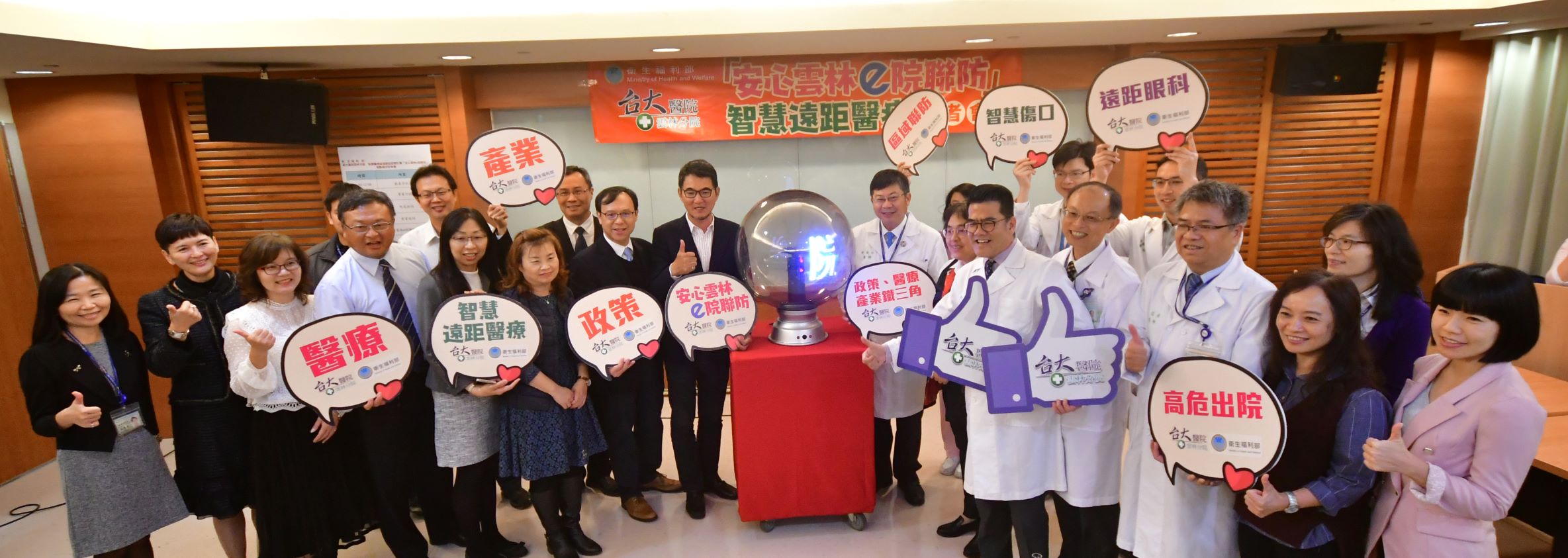 衛生福利部推動「智慧醫療區域聯防試辦計畫」,雲林縣臺大醫院雲林分院經遴選為試辦縣市,補助經費共1千500萬元。今日(20日) 臺大醫院雲林分院黃瑞仁院長舉辦「安心雲林e院聯防」遠距醫療計畫啟動儀式,邀集十家合作醫院、基層醫療、長照機構與資通訊產業夥伴,結合政府、醫療、產業,未來將可使區域內的各層級醫療資源更能緊密結合,彼此互補,打造出一個綿密的醫療物聯網,開創智慧遠距醫療的新紀元。